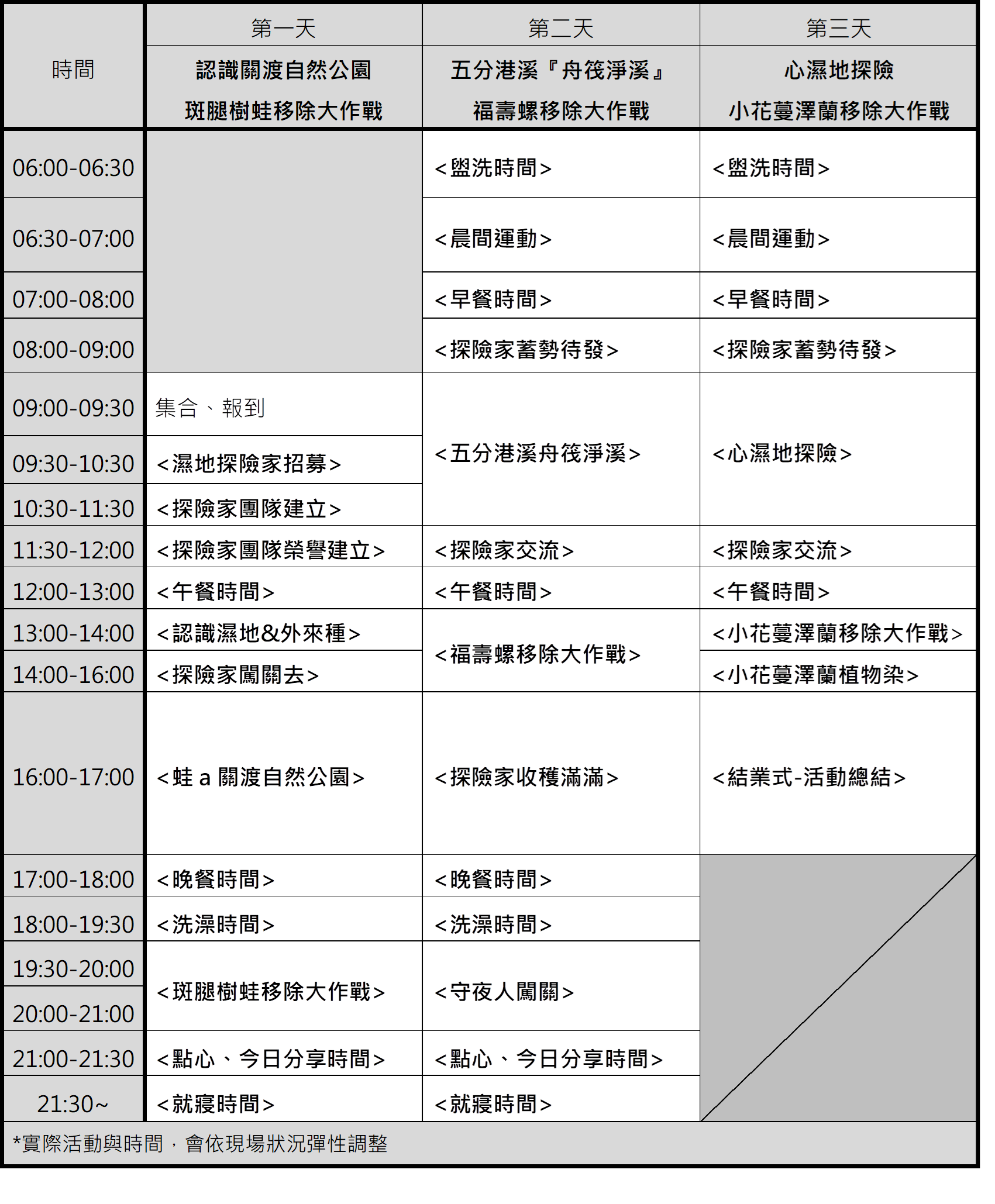 - 營隊流程簡表:(詳細資訊請見附件課程簡章)